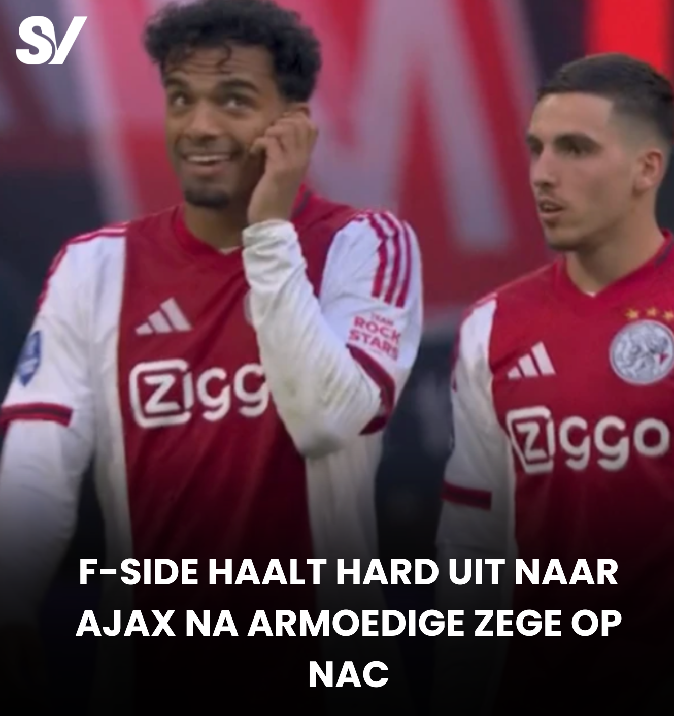 De druk op Ajax neemt dus verder toe. De F-Side liet zien dat drie punten alleen niet genoeg zijn: het spel moet beter, en snel ook. Met Feyenoord en PSV op de hielen kan Heitinga zich geen nieuwe wanvertoning permitteren.