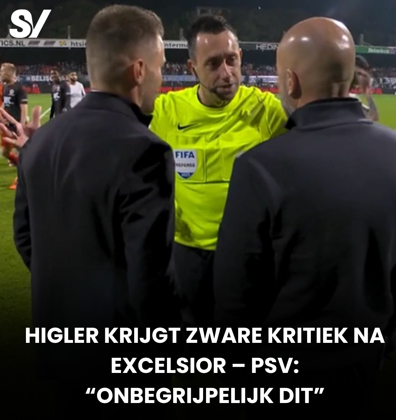 Tot onbegrip van beide ploegen dirigeerde de arbiter iedereen naar de zijkant. PSV-trainer Peter Bosz kon een cynisch lachje niet onderdrukken, terwijl Excelsior-coach Ruben den Uil zichtbaar met zijn handen in het haar stond. Higler beriep zich op de regels en gaf aan dat hij “niet anders kon.”